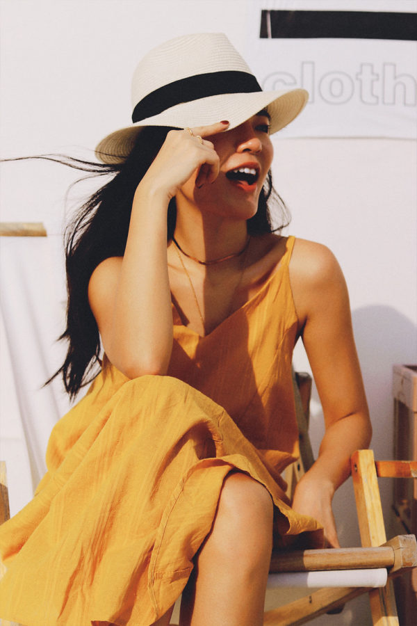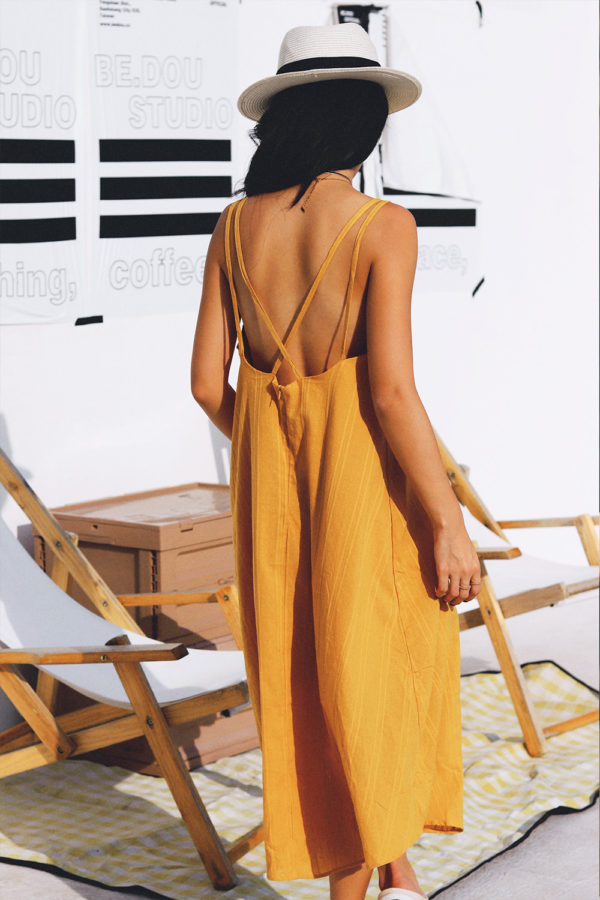 Mustard交叉露背長洋裝