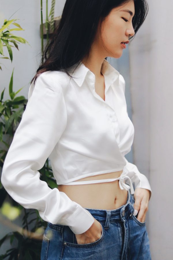 質感緞面綁帶襯衫