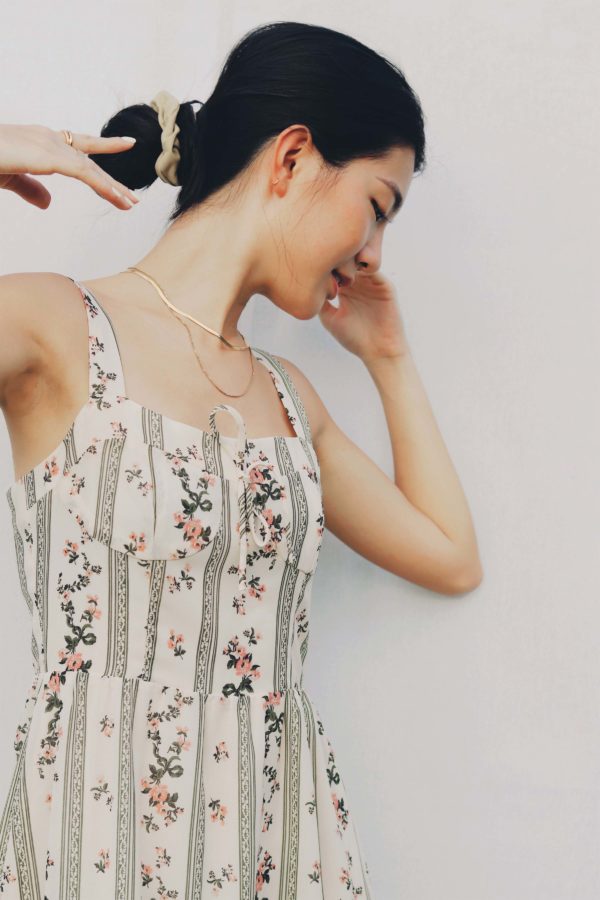 綁帶復古碎花洋裝